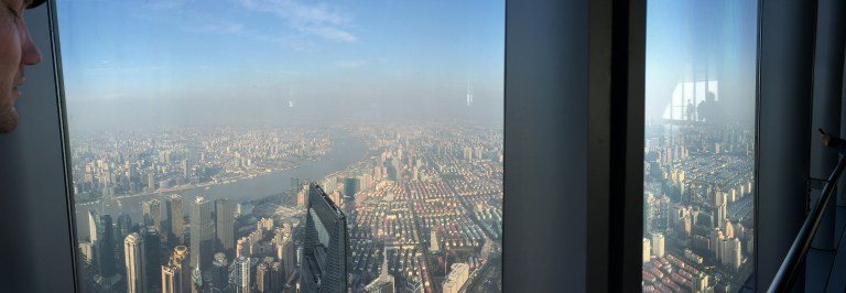 Blick vom 27. Stock auf den Shanghai Tower, das zweithöchste Gebäude der Welt.